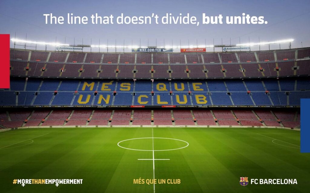 Under the slogan ‘The line that doesn’t divide, but unites,’ the idea is simple but filled with meaning: create at their facilities the Venus symbol, based on a centre circle and a cross below, taking advantage of the centre circles on the field of play and adding a line perpendicular to the one that separated the two halves.
